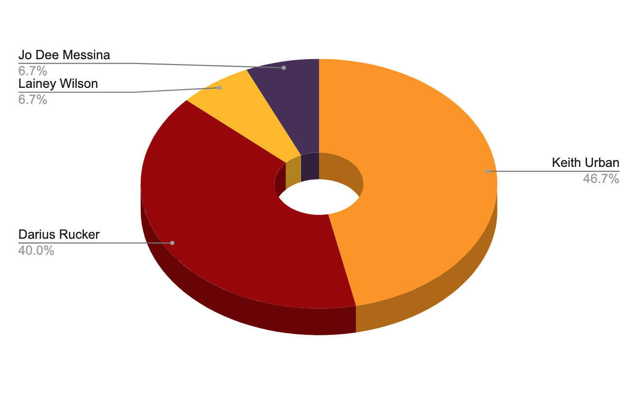 The question last week was, “Keith Urban, Darius Rucker, Jo Dee Messina and Lainey Wilson all topped the Country charts this week in years gone by. But which of these great artists has Bob played the most on his Country Show over the years?”.